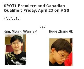 The Strong Players Online Tournament (SPOT1) launches tonight, April 23, at 7P on KGS, with three matches between U.S. players, as well as six Canadian players battling for three slots in the Top 32. The first major online open tournament in recent years has attracted a lot of interest from players and fans alike. Among the thirty-five strong players from Canada, the United States and Mexico are Korean 9-dan professional -- and two-time US Open Champion -- Myung Wan Kim, Canadian Yongfei Ge 7D, also a two-time US Open winner, and 2006 NAIM Champion Zhaonian “Michael” Chen 7D from New Jersey. “Every team is tough,” said Yixian Zhou 7D from Los Angeles, better-known as “missbear” on KGS. “But I will have fun to learn from the strong players.” Changlong Wu 7D from North Carolina encourages fans to “Come and watch, and join the AGA today.” The tournament continues over the weekend. Click here for the pairings. schedule and results. - Zhiyuan “Edward” Zhang, SPOT1 Tournament Director