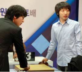 Park Yeonghun 9P defeated Hong Sungji 8P by half a point in the 38th Myeongin (Meijin) League play on Thursday, May