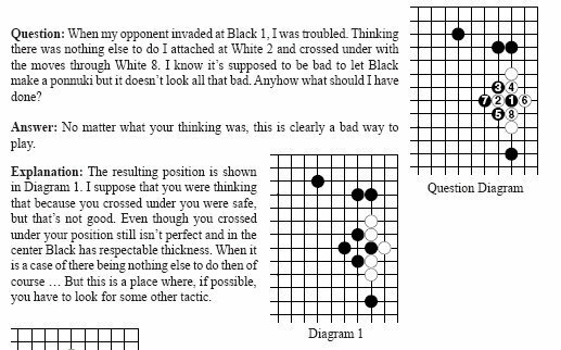 McGuigan in translation from “Jissen ni tsuyoku naru 80 dai (80 questions for getting strong at real play)” by Haruyama Isamu 9P (Haruyama is the author of Basic Techniques of Go). McGuigan translated another series earlier, based on writings of Nakayama Noriyuki 6P, called “What’s Wrong with that Move?” This material is used by permission of the Nihon Kiin which published the original text in 1979. Haruyama says that his primary audience is players who are aiming for shodan.