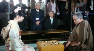 On 28 May 2011, as a prelude to the 32nd World Amateur Go Championship (WAGC), Otake Hideo 9P played an exhibition match with local school girl Ohara Moeka in a Castle Game reenactment at Matsue Castle in Shimane Prefecture. Ohara was a quarter finalist at the Japanese Girls High School Go Tournament in the individual division and received a 3 stone handicap from Otake. Both players donned elaborate kimonos to evoke the Edo period, during which the famous Castle Games took place. Shimane Prefecture was the birth place of two famous players - Honinbo Dosaku in 1645 and Iwamoto Kaoru in 1902. - Jingning; based on her original report at Go Game Guru. Photos: Joanne Missingham 5P (top right) and Ohara Moeka reenacts castle game with Otake Hideo 9P (bottom left)