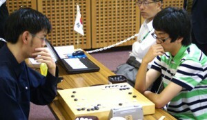 Round 4 of the 2011 World Amateur Go Championships (WAGC) began at 1:30p on May 30 with referee Yasuhiro Nakano giving the signal to start. With only seven undefeated players remaining, the competition was beginning to tighten up. Two of the three games among those undefeated players ended quickly. Choltit Rattanasetyut of Thailand made an early and serious mistake against Baoxiang Bai of China, and Morten Ofstad of Norway made a major mistake in the middle game against Tsung-Han Wu of Chinese Taipei, giving Bai and Wu easy wins. Wu, who said he had never played a European opponent before this tournament (“except possibly on the Internet”), rated Ofstad as fairly strong. Rattanasetyut was rated as considerably stronger than the Thai player who finished with four wins last year by Yuan Sun, a Chinese 3P player who had been a referee at the WAGC in Hangzhou last year and is assisting the Ranka staff this year.