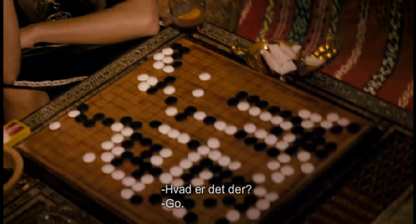 Liechti sent us this screenshot of a scene in which a woman is sitting by a goban. The Danish subtitle says: What's that?