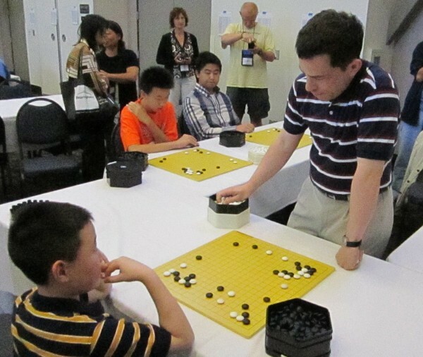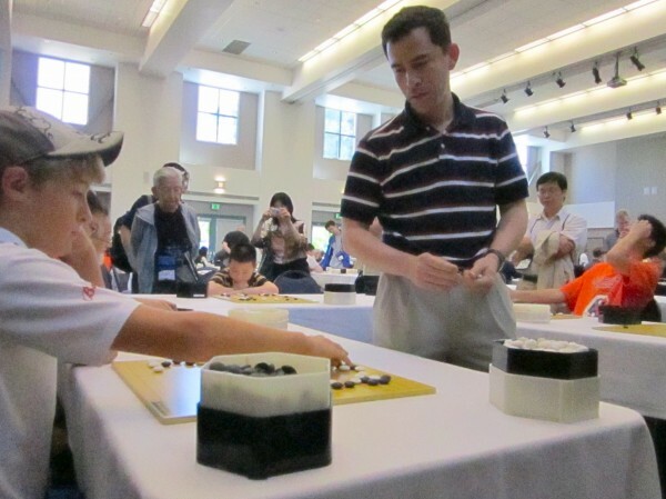 or : Former Redmond Junior Champion Oliver Wolf 4d, age 12, gives Michael Redmond 9P cause to reflect. - report/photos by Paul Barchilon
