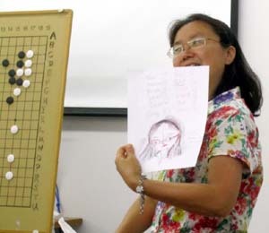 half of the attendees were young players, and three were new local players, reports local organizer Bob Bacon. “The registration fees for the first six young players were generously paid by an anonymous Triangle Go Group member,” Bacon adds. Guo “gave a number of interesting and helpful lectures and reviewed games,” co-organizer Thomas McCarthy tells the E-Journal. “She also provided us with the opportunity to play against her in a simultaneous format, and treated us to the joys of Survivor Go.” Workshop participant strength ranged from beginner to 3-dan, “and Guo Juan's instruction and assistance was perfectly adjusted to each person's strength. Laughter went hand in hand with learning, and everyone came away with a stronger appreciation of this wonderful game,” said Bacon.