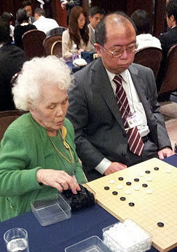 ). For a number of years, the oldest player has been Ms. Imayo Matsuyo, who turned 90 this year and hails from Ehime prefecture on the island of Shikoku. Longtime go journa