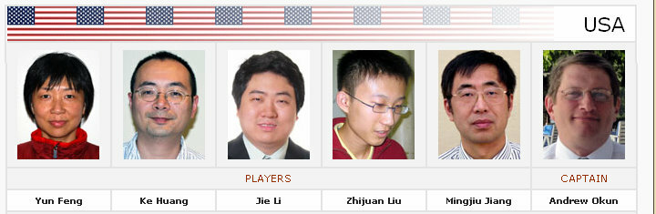 , captained by Andy Okun, includes Feng Yun 9P, Mingjiu Jiang 7P, Ke Huang 7d, Jie Li 7d and Andy (Zhijuan) Liu 7d.