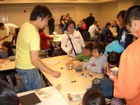 booklet, and watch games in the monthly AGA ratings tournament taking place in the room next door. "We need more teachers!" exclaimed Jay Chan, Go Expo Day co-organizer, as inquisitive adults and children poured into the room and filled all available seats. A few tournament players heeded the call for help, generously pausing their rated games and stepping in to teach until more go instructors could be brought in.