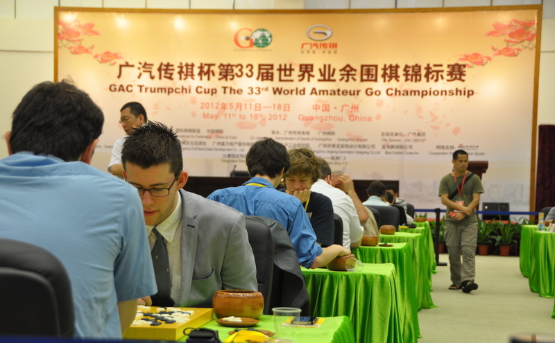 The 33rd edition of the World Amateur Go Championships (WAGC) began Sunday morning, May 13, in the gold-draped main playing hall of the Guangzhou Chess Institute ("chess" in this context refers to go, chess and Chinese Chess) in Guangzhou, also known as Canton, the capital city of Guangdong Province in South China. Fifty-six players (Poland's player missed his plane and has been replaced with a second Chinese player) have traveled from around the world to compete for the title as world's top amateur.