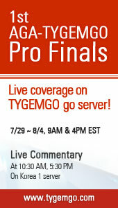 Results of Wednesday’s games from the AGA-TYGEMGO Pro Finals. The name in ALL CAPS is the winner (color played, next match).