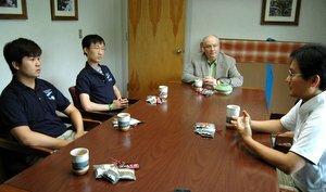 . Kim outlined the rights and responsibilities of a professional go player to the newly-minted professionals as they sipped organic green tea from US-made cups. “You’re eligible to play in major Korean tournaments as well as other tournaments where US pros are invited,” Kim said. He also discussed the “high expectations” of professional go players, noting that “You are not individual go players any longer, you are now representatives of the AGA and the US go community.” The two nodded solemnly, looking a bit overwhelmed. “It sounds very exciting,” Liu said, “the KBA has been so very generous to us all.” Added Shi, “I’m very happy for the opportunity to play and I hope that our success will influence more people to play go.” TD Jeff Shaevel agreed, saying that “A lot of people, including right here at the Congress, are looking up to you now. It might seem like the same as a few days ago, but everything’s changed now.”