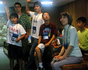 serving as the official judge. Fifteen kids competed in teams of three, trying to answer questions that were so difficult even Hotta was often stumped. Reigning