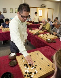 Photo: Hiroshi Yamishiro 9P playing simultaneous games at the SGC.