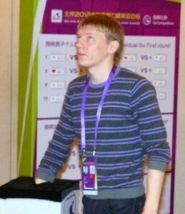 The first-day go segment of the SAWMG live web-streaming program featured Michael Redmond 9P's analysis of the Round 1 game between Russia’s Ilya Shiksin 7d and Japan's Daisuke Murakawa 7P, as well as visits from Russian Go Federation Vice-President Victor Bogdanov, Taipei player -- and official Go Ambassador to the SAWMG -- Joanne Jia Jia Missingham