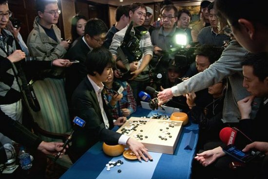 December 11 by half a point in an upset win. Gu Li seemed to be dispirited after losing, but he won the next game on the following day (December 12), scoring a one sided victory over Lee. The following day, Lee Sedol played black in the final, and he took an early lead for the first time in the series. However, Gu Li’s