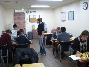 in Korean) as Americans are with chess. We visited Blackie's International Baduk Academy (BIBA), where we were greeted by friendly teachers Kim Seung-jun 9P “Blackie”