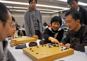 photo: Feng Yun analyzing a top-board game at the 2010 NJO; photo by John Pinkerton