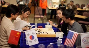 The North American Go Convention continues tonight as professional go players Myungwan Kim 9P and Joanne Missingham 6P (at right, playing Pair Go; click here for the game record) give lectures, play simuls or provide game reviews from 7-10p in Parsippany, NJ. The action shifts south tomorrow, moving to McLean, VA (8200 Greensboro Drive, Suite 900) and then to GMU in Arlington for the weekend (3351 Fairfax Dr.)