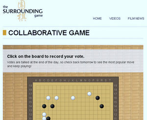 and vote for your move, and at the end of the day the votes are tallied and one move is played per day! I think it should lead to a very interesting game.” An interesting thing to consider, says Lockhart, is “what level of play is reached when each move is decided by democratic vote?” The fundraiser aims to raise the caliber and potential impact of the The Surrounding Game “by hiring a professional editor and paying for legitimate distribution,” Lockhart explains. With less than a month to go, they’ve raised almost $6,000 thus far; click here to see