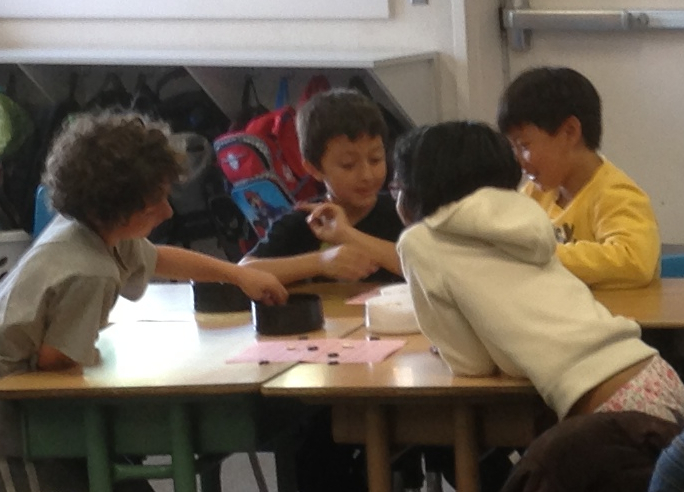 Wenguang Wang and Yanping Zhao presented a "Learn to Play Go" program at Sedgwick Elementary School, in Cupertino, CA, on April 2nd. "It was Sedgwick's Annual Discovery Day," reports Wang, "and we introduced go to four classes of third-graders (about 80 kids total). The kids were very excited when they learned some fun facts of go, learned the basic rules, and played a few 9x9 games. We also had a good time with the kids."
