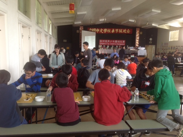 Justin Sheih 6d took top honors in the A division at the First Enlighten Youth Go Tournament, with a perfect record of 4 wins. The tournament was held in San Jose, CA, and was organized by the Enlighten Chinese School, go teacher Joe Lee, and the Santa Clara Youth Go Club. With over 70 young go players attending, it was one of the largest youth go tournament in the US. The top six players in each group took home a prize, and the top four were awarded a trophy. Thirty beginners played in the 13x13 sections, and each of them got a trophy and a prize. Report by Wenguang Wang, of the Santa Clara Youth Go Club. Photo by Ping Yeh.