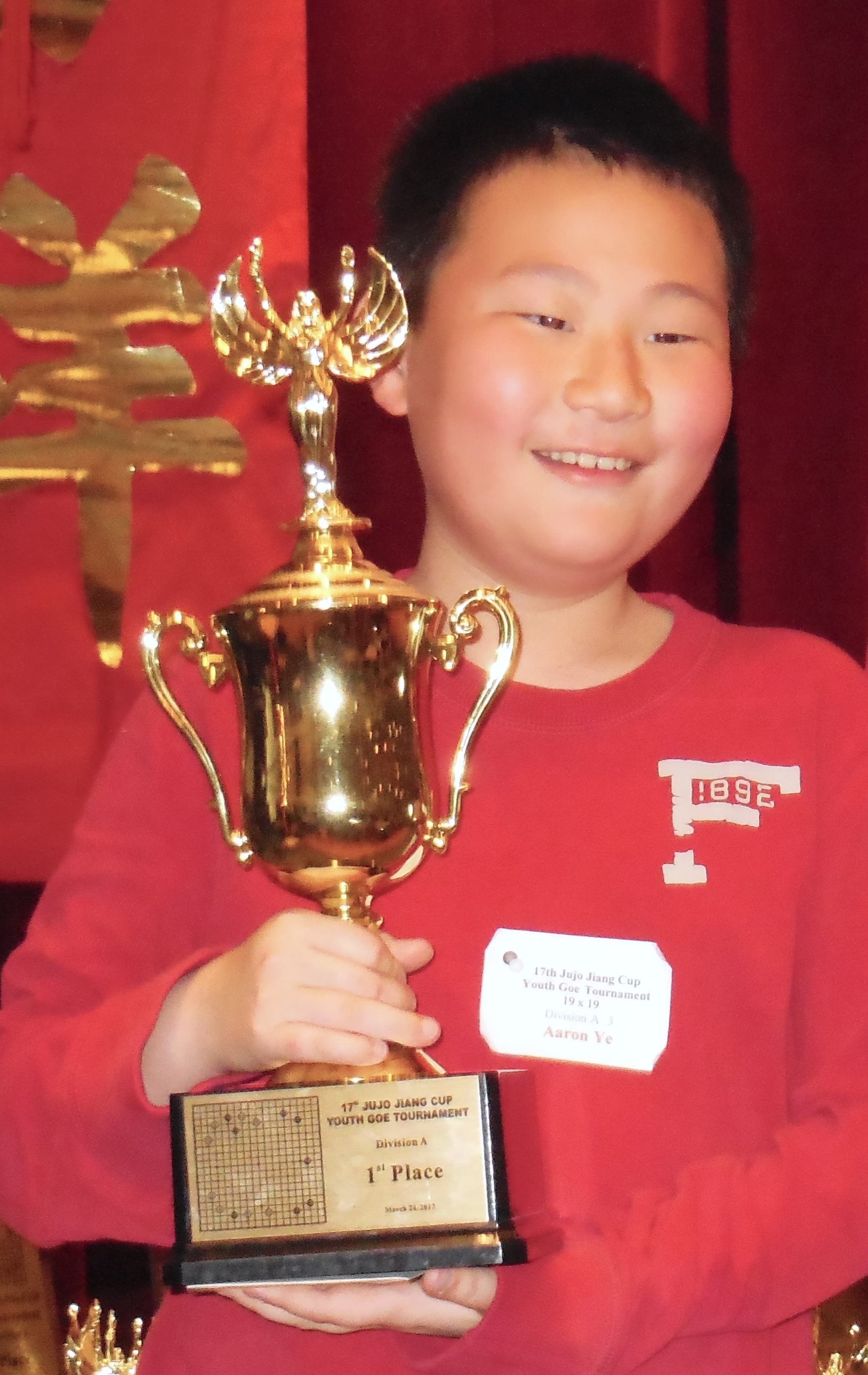 5-7 dan: 1st Place: Aaron Ye, 2nd place: Andrew Lu, 3rd place: Jeremy Chiu, 4th place: Tianyi Liu; 1-3dan: 1st place: Daniel Liu; 1k - 8k: 1st: Eric Liu; 17k - 29k: Mathew Cheng; 13 x 13 board: Adam Tang.