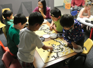 in Tacoma, where he will be honored at the final awards banquet. "The most satisfying thing about introducing go to young kids has been seeing many of them become totally involved in the game, and eventually zipping past me in playing strength," Moseson told the E-Journal. Moseson started the go club at Manlius Pebble Hill (MPH), in Manlius NY, when his two sons were both students at the school, in 2003, and has continued ever since. "At various times I've also run short eight-week sessions for students in the first grade and third grade classes, and we've had some of those students eagerly join the club when they reached middle school age," Moseson reports. "I'm also running a club with Chinese elementary school age kids, at a 'Chinese young adult ministry' that meets every Friday evening for dinner and bible study. I meet with the kids for an hour before dinner.