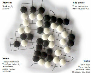 ", which is featured as a side event at the Milton Keynes tournament (graphic from tournament flyer at right; flyer and problem by