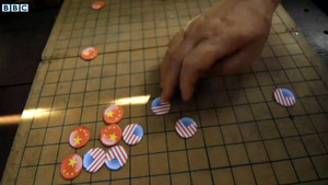 yuan?” with scenes of Chinese go players in a park playing with discs emblazoned with US and Chinese flags as the report explores charges that China is manipulating its currency to boost exports.