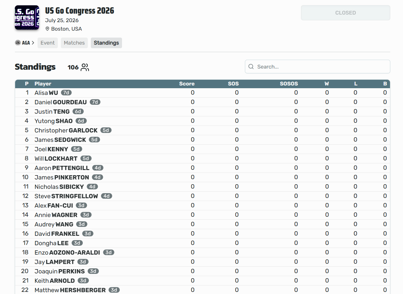 Players planning to attend this year’s U.S. Go Congress can now see who else is heading to the