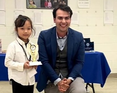 Handicap Division I was won by Jalong Han (5–0), with Ziqi Wang (4–1) second and Anderson Tsai (3–2) third. In Division II, Benjamin Lo (5–0) took first, followed by Olive Long (4–1) and Victor Makoviichuk (4–1). Division III was won by Rebecca Margetts (3–2), with Wilton Blue (3–0) second and Jaylene Chang (2–3) third; Chang (at left in photo with TD Enrique Garcia), age