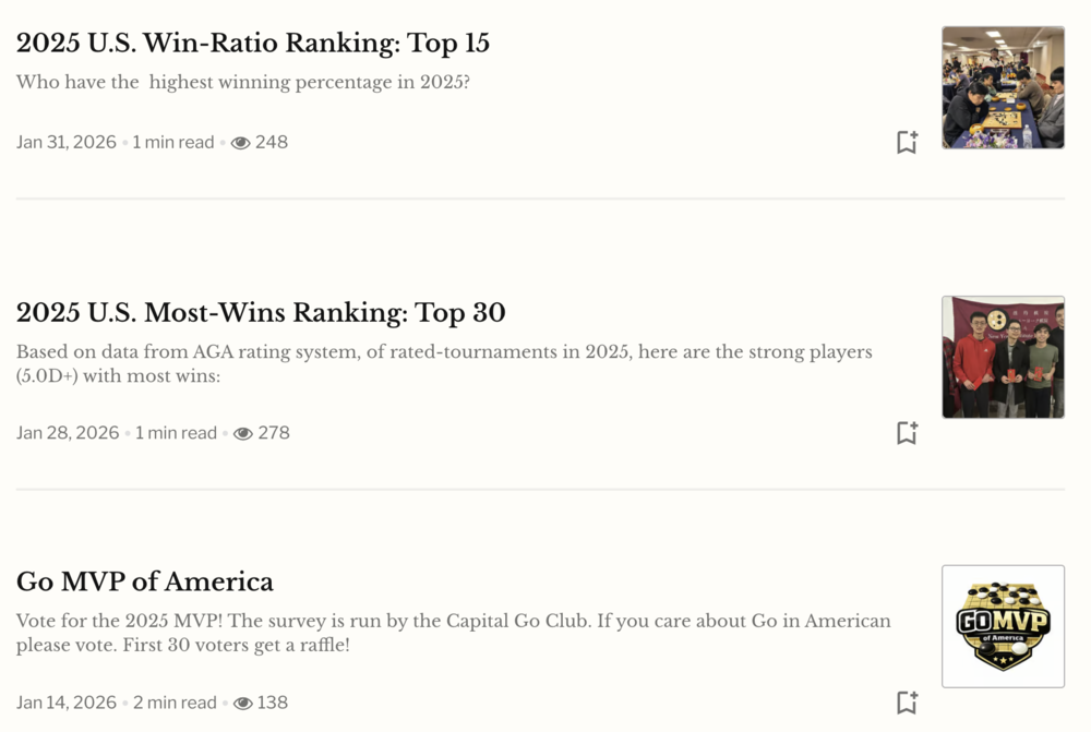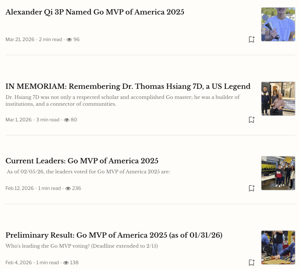 Get important Go news from the AGA, links to upcoming events and new blog posts.