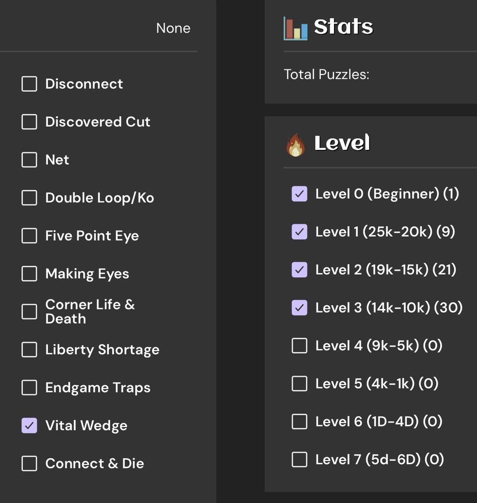 I failed to see that the proper move was from the inside rather than the outside. I hope to be able to see such problems in the future. With that in mind, I headed over to Tsumego Dragon, and loaded up every Vital Wedge problem available to me. There are 61 of them, and they range in difficulty from Level 0 to Level 3.