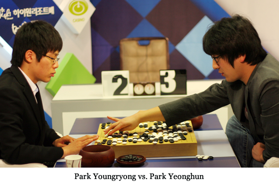 Park Yeonghun 9P (r) defeated amateur Park Youngryong 7d by resignation in the 38th Myeongin (Meijin) Preliminary