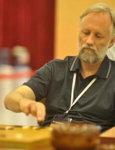 Chinese-born New Zealander, 15-year-old Kaikun Xie, easily forced opponent Oyutbileg Tsendjav to resign. Boonping Teng of Malaysia “outplayed me in the first part of the game” said the United Kingdom's T Mark Hall, complaining of severe jet lag, 'but then he made a blunder in a ko fight at the very end.'…The game between Csaba Deak of Brazil and Daniel Baumann (r) of Switzerland, both ranked 1-kyu, took a similar course, when Deak also "blundered (in the end) and had to resign."…Perhaps the last closely-matched first-round game was also fought between kyu-level players John Gibson (2-kyu) of Ireland and Carlos Leon Rios Joels (1-kyu) of Peru. 'I'm going to play quickly because I'm hoping to exploit my opponent's nervousness at being in his first world championship,' said Gibson.
