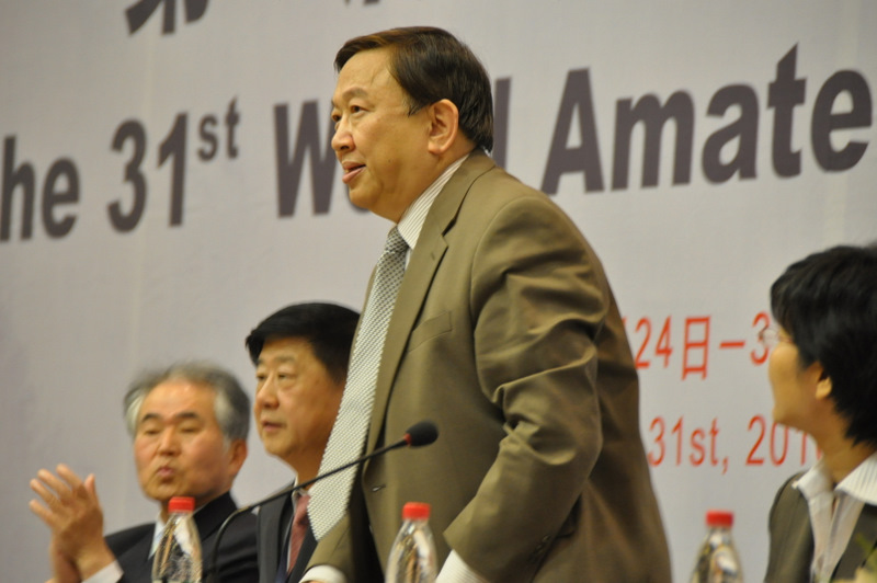after yet another long day doing double-duty as IGF Director and WAGC player for the U.S. Right after the day’s rounds wrapped up Friday afternoon – he lost to Korea and Hungary -- Hsiang was off to help prep for the WAGC’s first-ever drug tests of the top players at the conclusion of the tournament on Saturday. “We must do this from now on to maintain our membership in the International Mind Sports Association,” Hsiang said. He’s serving as the sole Western representative on the arbitration committee for the upcoming Asian Games, and also noted that the United States had been among those advocating for the new three-country support format for the WAGC, with Japan, China and Korea sharing financial responsibility. “There was quite a bit of resistance at first,” Hsiang noted, “but when (main sponsor) JAL’s funding dried up, it became a more receptive environment and things worked out.” Hsiang, an IGF Director who serves as the U.S. representative to the International Go Federation, has also been the lead representative to the World Mind Sports Games. He also noted this year’s second annual collaboration between the IGF’s Ranka online and the American Go E-Journal in teaming up to cover the WAGC. “These are all important developments in world go, and it’s largely an unknown story, but the reality is that we are somebody now, and making real contributions to international go.”