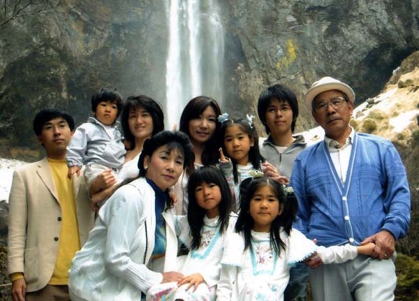 (back left, next to husband Naoki)