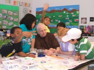 - Paul Barchilon, E-J Youth Editor. Photo: Hey, at center, teaching children at Brooks Elementary School in Medford MA.