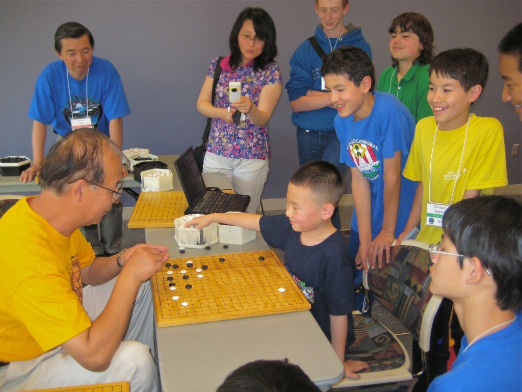 enjoyed his game review with Yilun Yang 7p, and so did the crowd that gathered round to watch. Youth also got to play six-on-1 and 8-on-1 simuls with top pros from Korea, China, and Japan.
