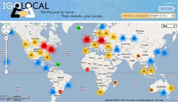 contact each other, and there are now 1131 users in 62 countries, with 449 of those in North America and 570 in Europe. The network is growing at 35 new members each day, reports founder Chuck Thomas, “and that number is trending upwards.” Users "are still figuring out how to use the system to the best benefit of their communities,” says Thomas. “1,100 users may sound like a lot of go players, but it's actually an absurdly tiny number when spread throughout the entire planet." Thomas says he can "easily envision a quarter million users on this system," and says that "At the current rate, it may be another two months before we begin to reach critical mass. This is fine - the users who are already on the system are able to go about their business, and one day they'll receive a PM or even a game challenge from a previously-unknown rival, who is well matched to their rank." Thomas points out that "Igolocal keeps working for you even if you forget about it for a while," and admits that "Even I have only the faintest idea what the end result will be. This has never been done before.” Two hundred of the IgoLocal users are dan-level or stronger and two professionals are also registered, Jennie Shen 2p in Santa Barbara, and An Young-gil 8p in Sydney, Australia. The site supports six languages, English, French, German, Dutch, Russian and Japanese, and volunteers are now working on Italian, Polish and Chinese translations.