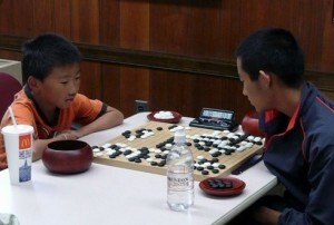 Twelve players participated in the 3-round tournament. Teng’s only loss was a four-stone handicap game against 8 year-old Yunhuang Zhao (l). Wayne Zhang 20 kyu and Kevin Chin 4 kyu were both undefeated, with three points each. Steve Mount was the Tournament Director.