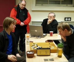 for the full results. Man triumphed decisively in the Man-Machine Challenge, sponsored by the British Go Association and held in parallel with the London Open. John Tromp 2d won 4-0 and went away $1000 richer courtesy of Darren Cook, who was using Many Faces of Go on his laptop. Tromp, who felt the result didn't reflect the closeness of the games, said that he wasn't going to repeat his bet, as he expected to lose in a couple of years if the computer continues improving at the current rate. The 2010 London Open was again sponsored by Pandanet and Winton Capital Management, but attendance was down slightly, no doubt due to the extremely cold weather and snow-related travel difficulties that immediately preceded Christmas. Luckily this had disappeared by the time the London Open started and 99 players turned up to play in this by now traditional 4-day event, which finishes up on New Year's Eve. Tormanen, who hails from Oulu in Finland, also won at least one blitz game against Guo Juan 5P at the New Year’s Eve party, during a series of games that was a serious treat to watch and listen to for those attending. Guo, from Amsterdam, was again resident professional, providing game commentaries and lectures throughout the tournament. Although she didn’t play in the Open, she played in the Pair Go Tournament and won, partnered by Ian Davis from Belfast. She also kindly provided a €100 sponsorship for this year's London Open on her audio site; certificates are given to five young deserving players, each worth 20 audio lectures. The Lightning was won by Jukka Jylanki 9k from Finland, who beat Andrew Kay 4d from the UK) in the final. The final event was a casual Rengo event after the tournament proper had been closed, and before the New Year’s party, which was won by Frenchmen Arnaud Knippel and Michael White, who attributed their success to brand new hats worn throughout. Geoff Kaniuk and Jenny Radcliffe were the tournament’s main organizers, supported by chief referee Nick Wedd, Tony Atkins and many others. This was Kaniuk's last year as London Open Tournament Director, after many years of extraordinarily dedicated service and hard work.