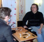 He welcomed me back and I visited his club on a very snowy cold night. Since it took me 70 minutes in a taxi while I could have walked there in 35 minutes, I only played one game with a local player. Maxim was kind enough to take me back to my hotel via the subway -- a mere 15 minute walk/ride -- before he returned home. Pictured are my game and Maxim (facing the camera, at left) in one of his teaching games.”