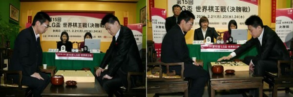 . In the second round of the 15th LG Cup final, held February 23, Piao Wenyao 9P (l in photo)