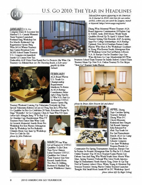 The “Year in Headlines” section of the 2010 American Go Yearbook has just been released (