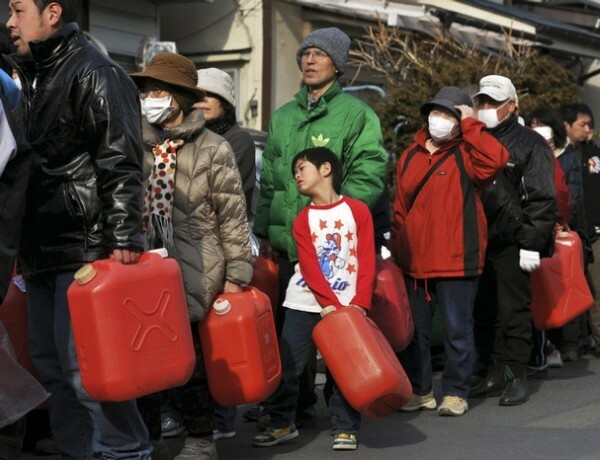 A boy waits in a line in front of a gas station in Kamaishi, northern Japan Monday, March 14, 2011 following the March 11 massive earthquake and tsunami. (AP Photo/Asahi Shimbun, Naoko Kawamura