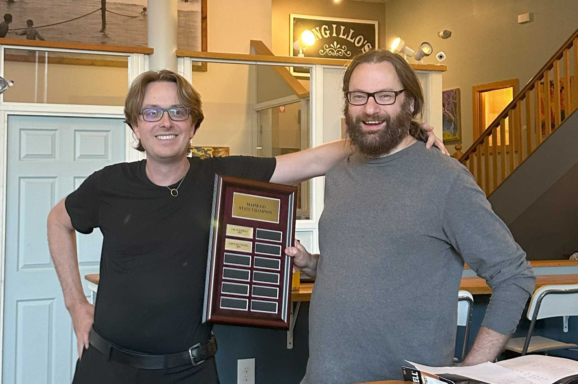 21 as Jonathan Green topped a field of eight Maine residents to claim the Maine State Go Championship. Green received the tournament’s new Championship Plaque from Mako Bates (see photo), capping a brisk day of boardside battles in Portland.
