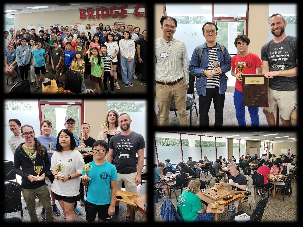 Bottom left: Some more section winners and tournament officials: From left to right: front row: Kai Northcott, Yun Luo, Yuji Ichihashi. Back row: Andy Wong, Ryan Rostohar, Skip Lazenby, Peikang Liu, Chloe Hazzard, Chris Haverly